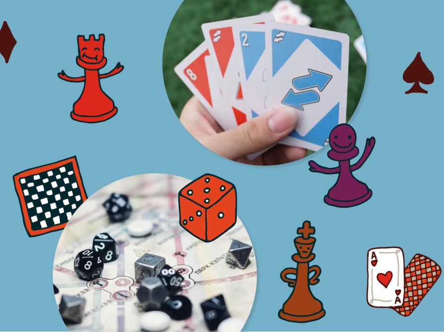 Kom og vær en del af det spilleglade fællesskab. Vælg et af vores mange spil, eller medbring et af dine egne yndlingsspil. Vi har både spil til brug på stedet og til at låne med hjem.